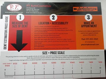 We use an Industry Standard PDR Repair matrix for Accurate Estimating of the Dent Repairs required on Your Vehicle .